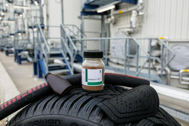 At the end of the process, two types of products emerge: liquids used to make clothing or bottles, and a brown powder that can replace carbon black, a powder used as a filler in tyres and other rubber products.