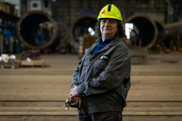 “In the beginning, it was a shipyard. We built a good dozen ships a year. Now we build dozens of wind turbine towers. It’s quite different,” she said.