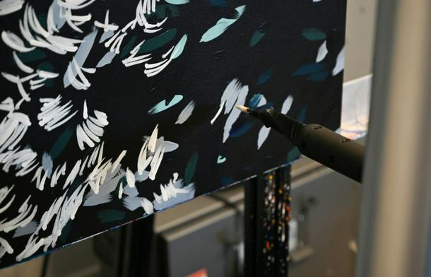 To reproduce Goulet’s piece, an Acrylic Robotics specialist recreated the work using digital brush strokes and pigments, developing instructions to guide the robot.