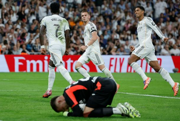 Los Blancos took the lead early in the second half through Vinicius, whose shot took a fortunate deflection off Santi Comesana and flew past the helpless Arnau Tenas.