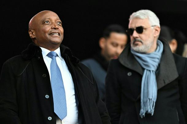 Confederation of African Football president Patrice Motsepe (L) pictured during the Africa Cup of Nations in Morocco