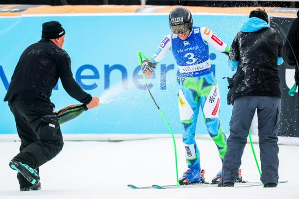 It was a champagne finish for Slovenian Ilka Stuhec at the end of her 25nd and final World Cup race