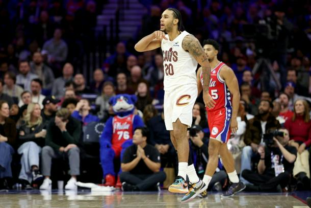 Cleveland's Jaylon Tyson celebrates a three-pointer in the Cavaliers' NBA victory over the Philadelphia 76ers