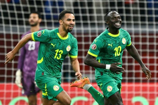Sadio Mane (R) celebrates his match-winner for Senegal with Iliman Ndiaye.