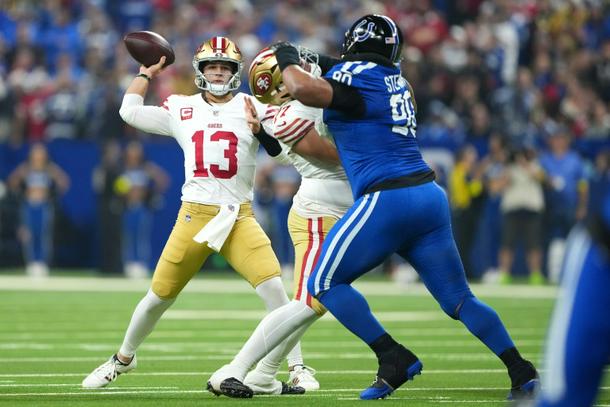 San Francisco quarterback Purdy finished with 295 passing yards from 25-of-34 attempts in a clinical exhibition at the Lucas Oil Stadium in Indianapolis.