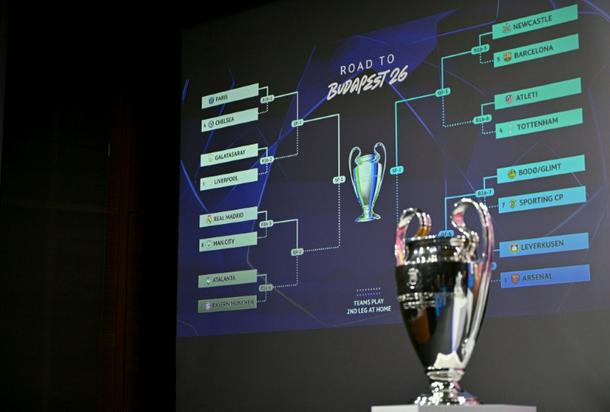 Arsenal, who finished first in the league phase, will come up against Bayer Leverkusen and if they win that would then be huge favourites in a quarter-final against Bodo/Glimt or Sporting of Portugal.