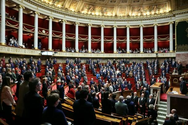 Members of the French parliament stand for a minute of silence in tribute to Quentin Deranque, a nationalist activist whose killing has become a political lightning rod