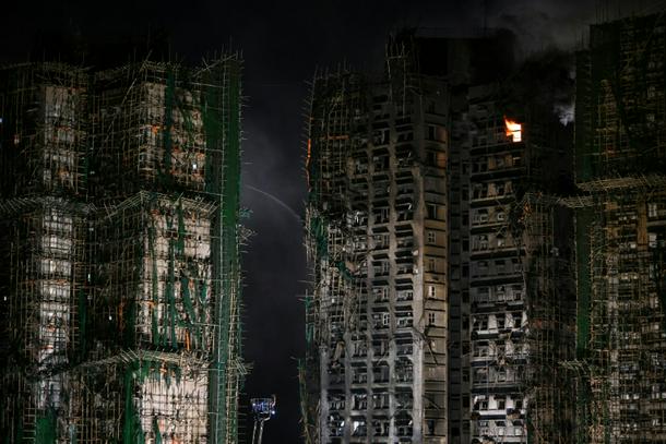 Authorities have begun investigating what sparked the blaze – the financial hub’s worst in almost 80 years – including the presence of bamboo scaffolding and plastic mesh wrapped around the structures as part of a major renovation.