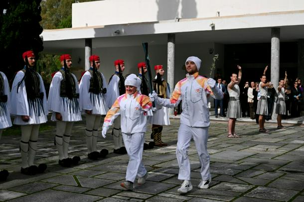 The pair ran from the museum to the grove in Olympia, the birthplace of the ancient Games, where the heart of modern Olympics founder Baron Pierre de Coubertin is kept, and handed over the torch to Italian luge great Armin Zoeggeler.