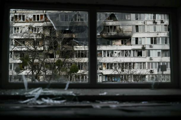 Damaged residential buildings can be seen in Kyiv after a fresh bombardment by Russia, even as negotiators work on tweaking a US-supported deal to end the war in Ukraine