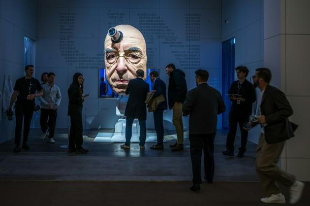 An animated head representing a watchmaker, at the Ulysse Nardin booth