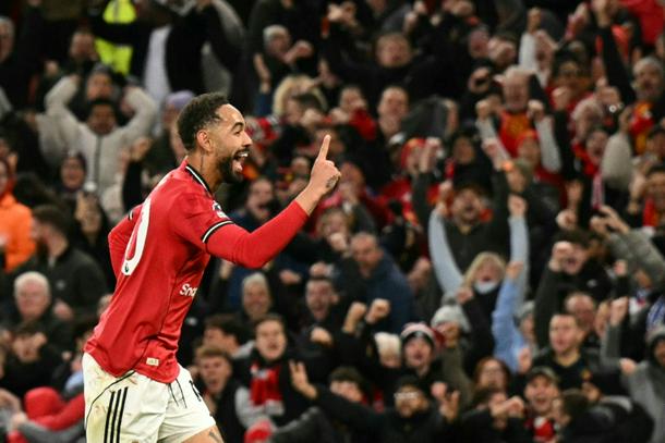 Manchester United's Matheus Cunha celebrates scoring against Brighton