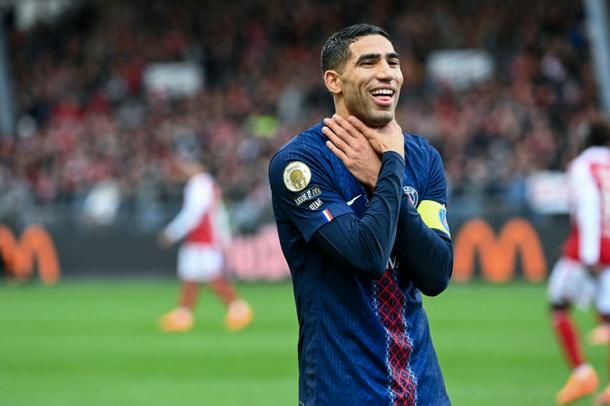 Achraf Hakimi celebrates after scoring his second goal against Brest