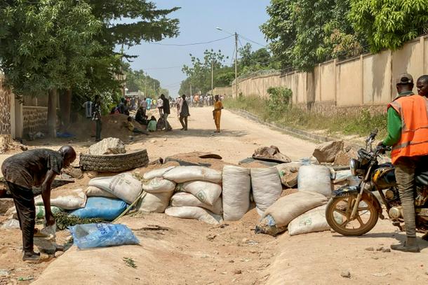 Supporters of Issa Tchiroma Bakary build barricades outside his residence after the results were announced
