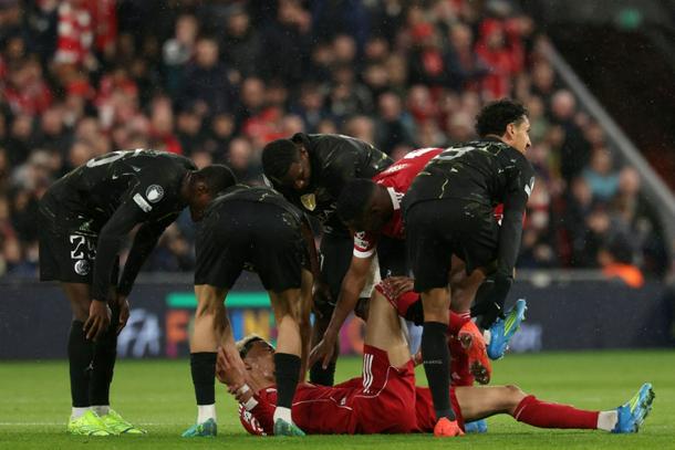 Frimpong’s first season at Anfield has also been decimated by recurring muscle injuries and had to be replaced once more at half-time by Gomez.